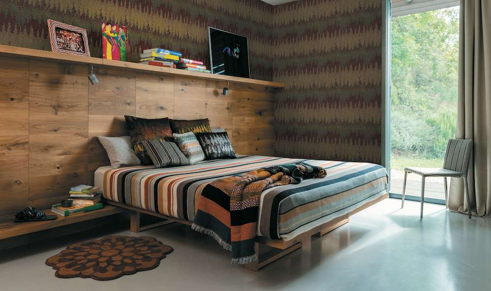 Missoni Home Alps wallpaper with a stunning design that combines the beauty of nature with the mimetic charm of the forest. The different versions of this wallcovering come in varied camouflage made by their colours. Bring nature into your home in a stylish way with this luxurious wallpaper. This wallpaper has a woven textile texture with a warm feel.