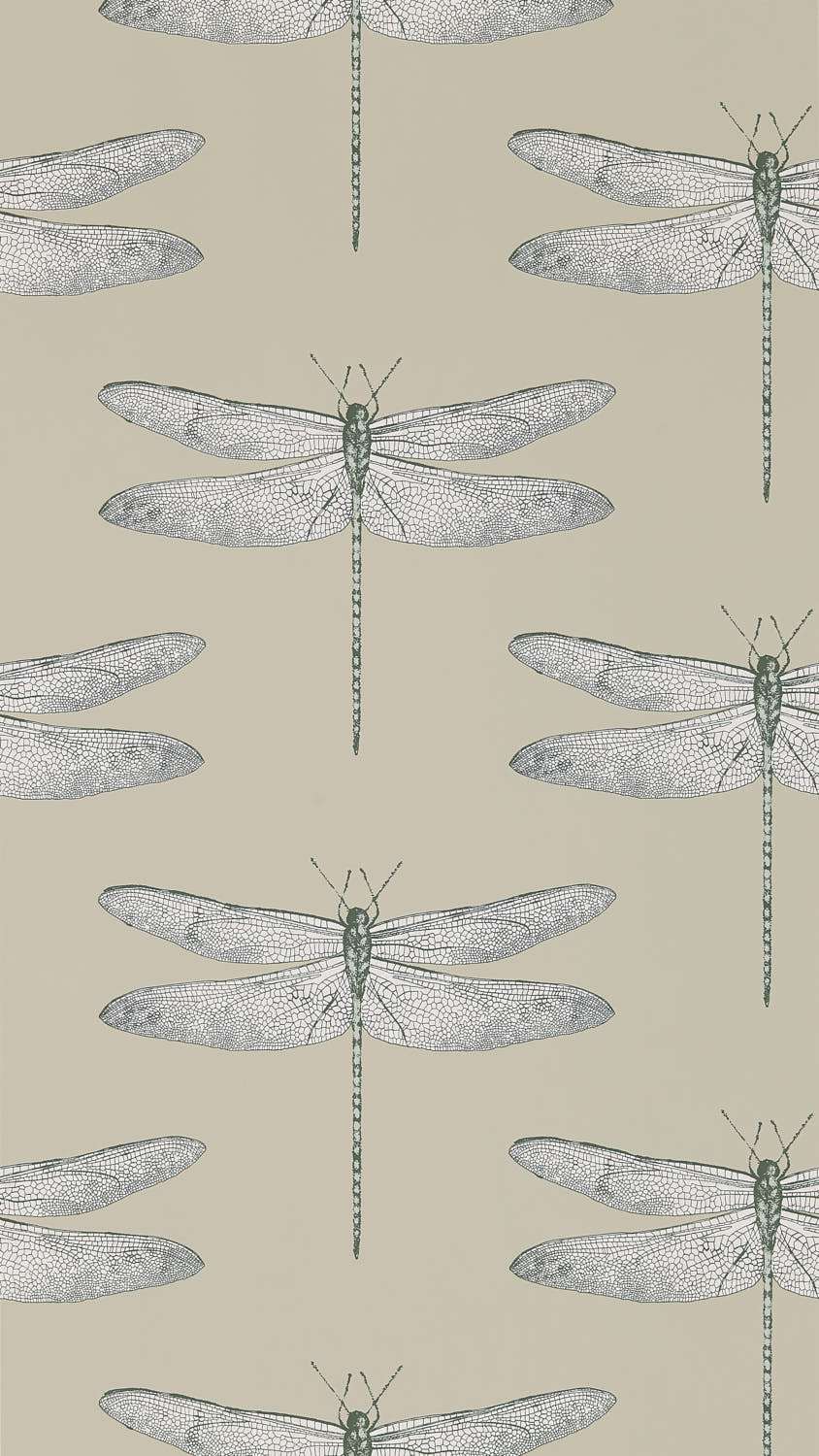 Een opgeschaald delicaat getekend libelmotief wordt op verschillende gekleurde achtergronden op dit behang geplaatst en vormt een brandpunt voor zowel moderne als klassieke huizen.n Er is ook een stof met dezelfde naam beschikbaar.