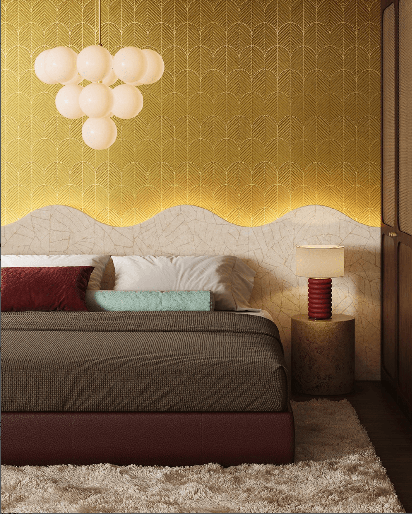 Tegelijk zorgen glanzend chroom, golvende vormen en diepe kleuren zoals petrol en zeegroen voor diepte, terwijl klassieke combinaties zoals rood-wit-blauw een frisse herinterpretatie krijgen.