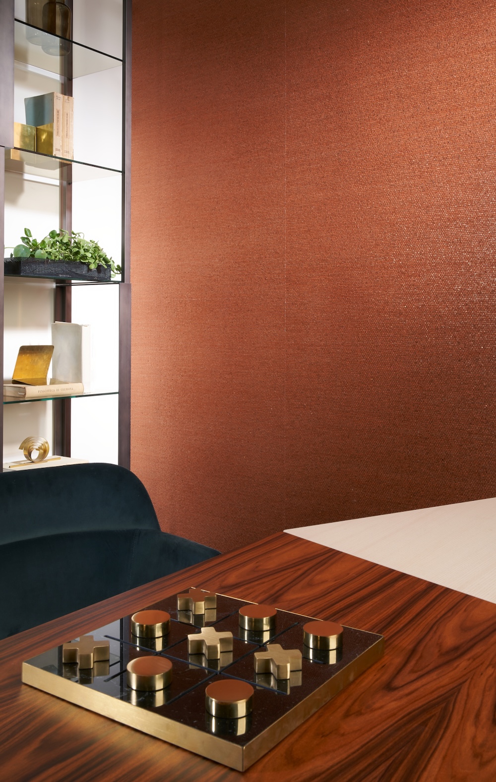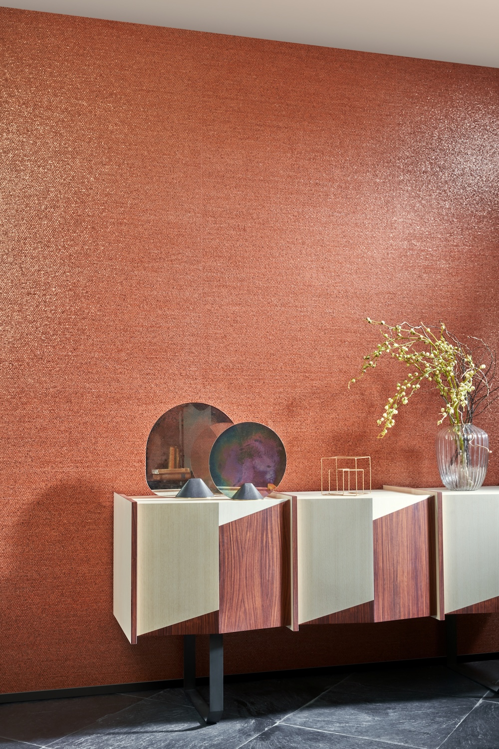 Voor het dessin van de Shimmer wandbekleding uit de All Naturals-collectie van Arte worden vellen met gekleefde micaschilfers ingekleurd en versneden tot heel smalle strookjes, die daarna met een klassiek weefgetouw worden ingeweven. Mica is een grote groep mineralen waarvan de kristallen perfect splijten in zeer dunne elastische vlakken die glinsteren ofwel ‘shimmer’ in het Engels. Verkrijgbaar in zes kleurstellingen. Leverbaar op afsnijding.