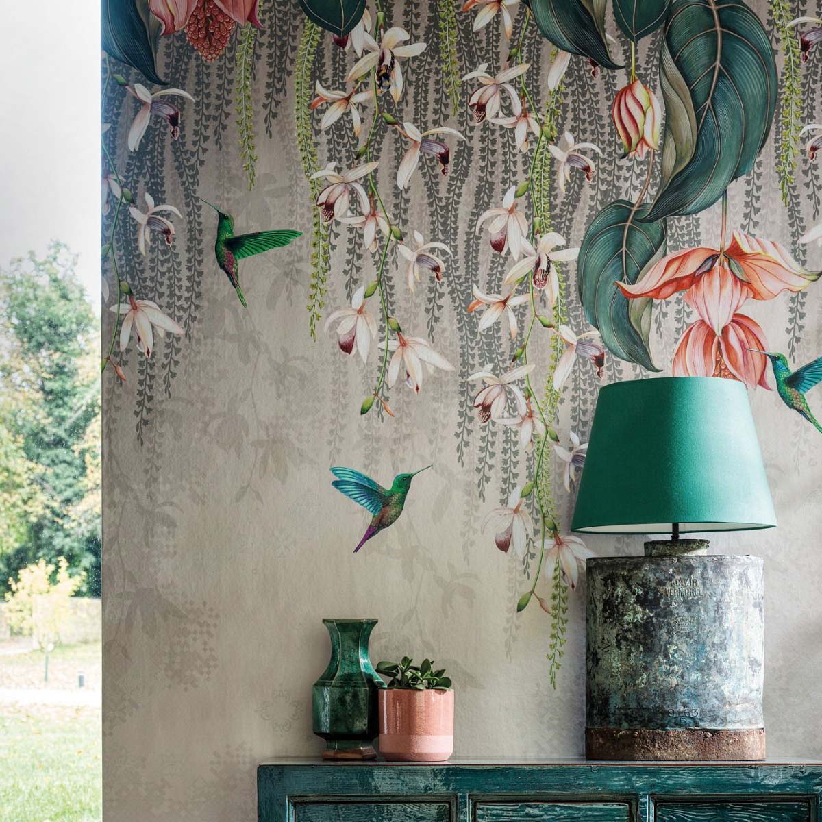 “Ananda” betekent ‘bliss’ en dat straalt het Trailing Orchid dessin uit de Ananda-collectie van Osborne & Little helemaal uit. Een patroon van overhangende orchideeën en kolibries geprint op een warme metallic goud achtergrond. Zoals je van Osborne & Little mag verwachten, is de afwerking topkwaliteit en voelt het premium materiaal heerlijk aan.