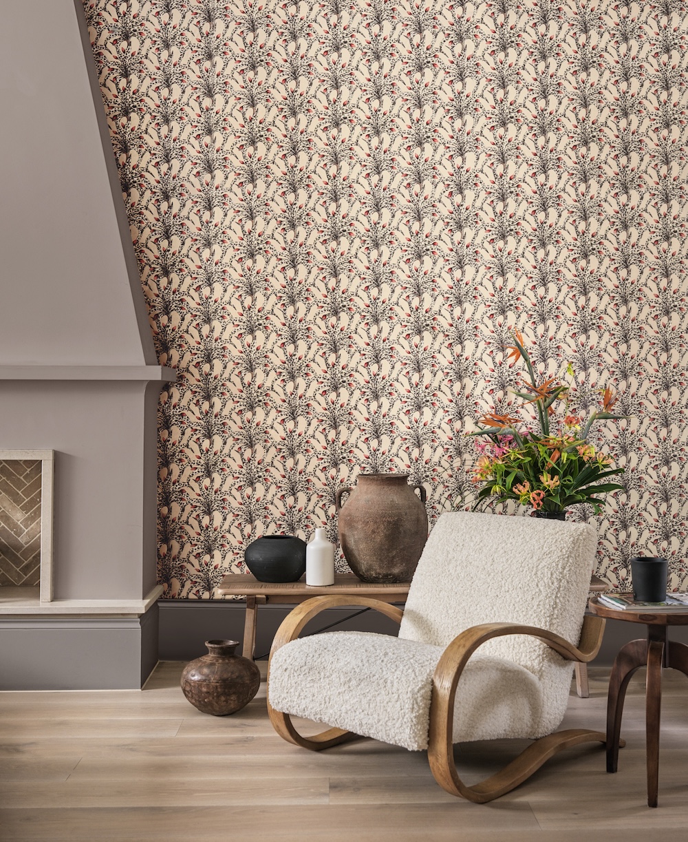 Cole & Son x Ardmore – Zuid-Afrikaanse kunst in behangvorm. Het Britse Cole & Son, sinds 1875 bekend om uitzonderlijk design, kleur en vakmanschap -én een archief van meer dan 2000 blokdrukken en honderden historische patronen-, werkt voor deze collectie samen met het Zuid-Afrikaanse Ardmore, beroemd om zijn handgeschilderde keramiek vol exotische dieren en botanische motieven. Eerdere collabs van Cole & Son x Ardmore — zoals Ardmore, Jabula en het iconische Savuti — brengen Brits ambacht en Afrikaanse expressie samen in ontwerpen vol jungle vibes, rijke fauna en cultureel gelaagde details. De Baobab-collectie is één van de absolute highlights. Geïnspireerd door de Zuid-Afrikaanse ‘Tree of Life’ – de Baobap – combineert het handgeschilderde fauna, tropische symboliek en een luxueus Platinum-palet met een subtiel metallic effect. Dankzij de vezelige drager krijgt het behang een bijna handgemaakt karakter. De collectie bestaat uit negen levendige ontwerpen, elk rijk aan detail. Baobab brengt de sfeer van KwaZulu-Natal moeiteloos naar binnen: warm, wild, kleurrijk en uitgesproken.