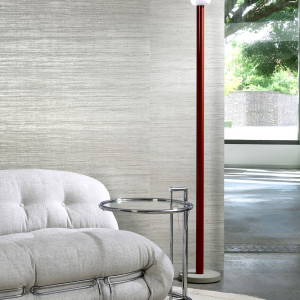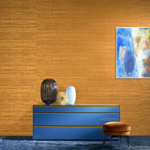 Eri maakt van elke wand een uniek object. Pure luxe. Geïnspireerd op een open geweven zijde, aangebracht op een ondergrond van kostbare hoogglansfolie. De warme gloed van het edelmetaal schijnt door de fijne mazen van de stof, voor een meer uitgesproken en exclusieve uitstraling.