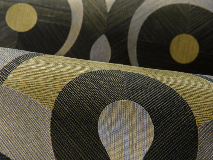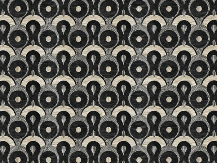Het dessin is opgebouwd uit ronde, overlappende vormen met een haast hypnotiserend effect.