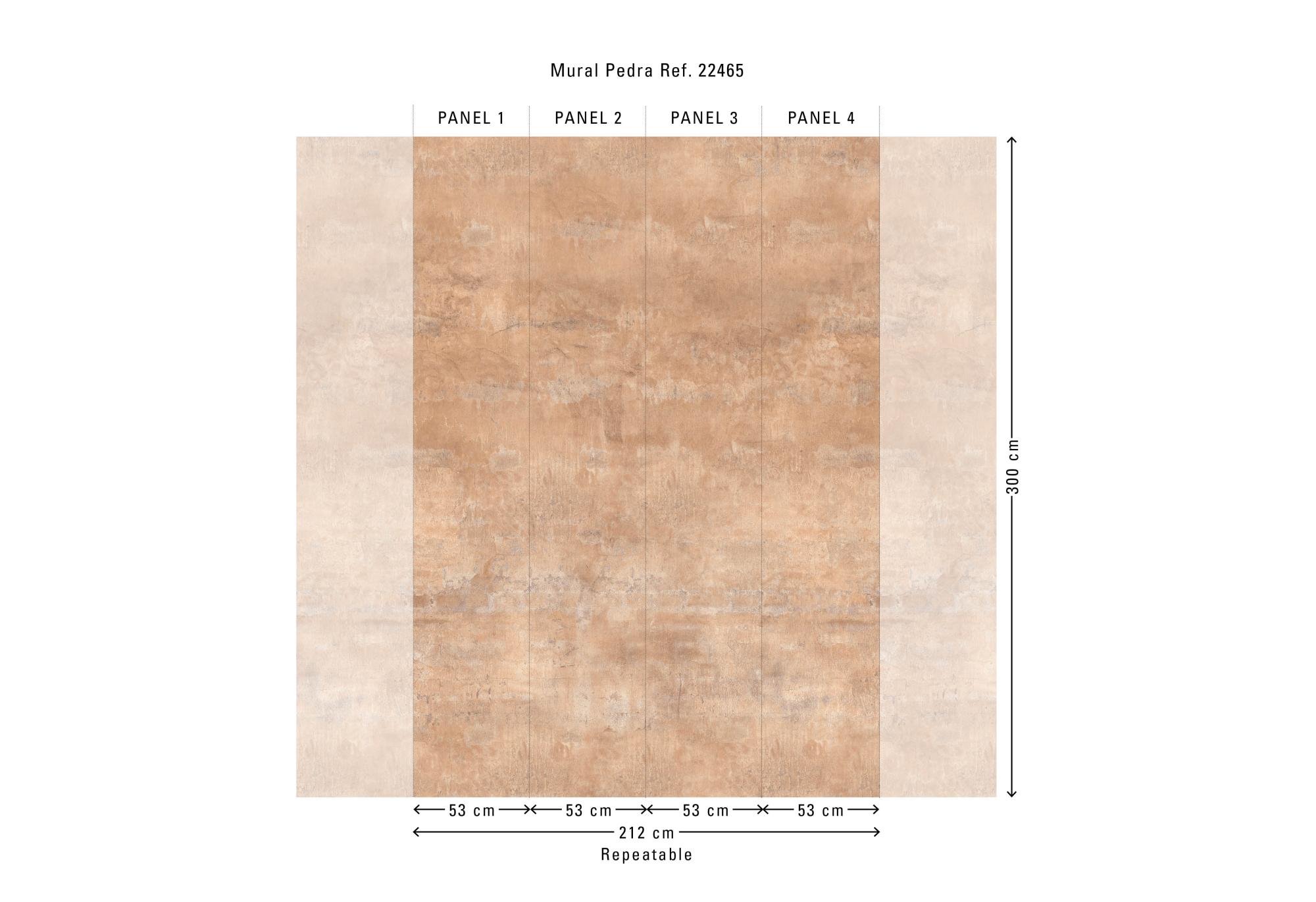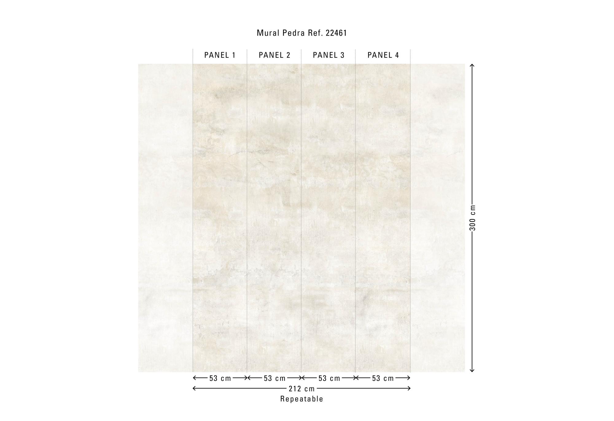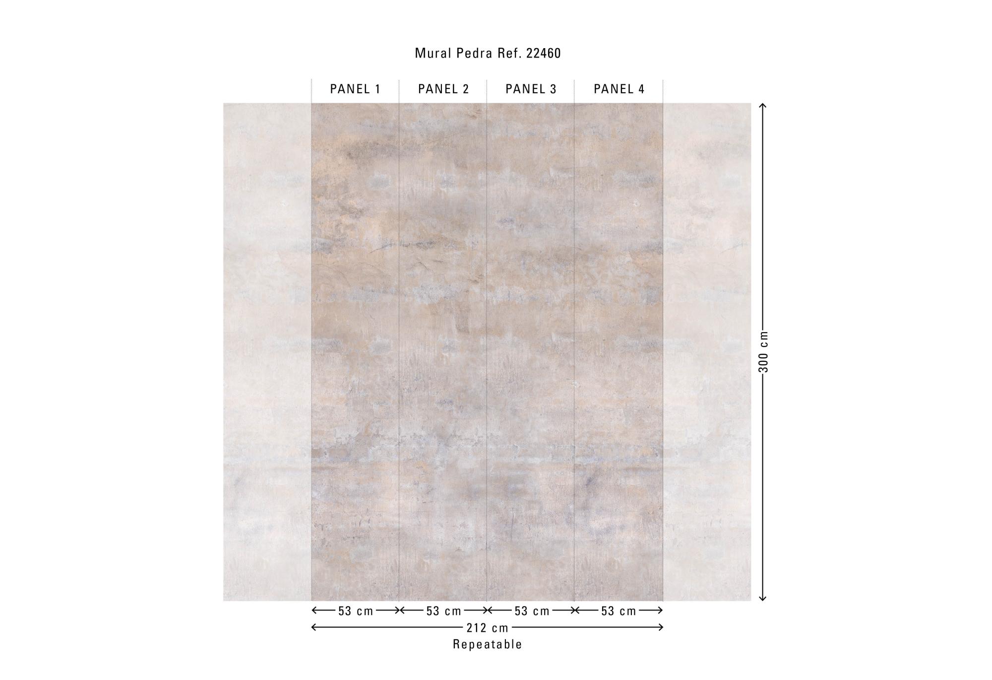 De Bossa Nova-collectie van Hooked On Walls vertaalt het Braziliaanse muziekgevoel naar grafische patronen: ritmisch, helder en met een ontspannen flow. De collectie combineert organische lijnen, tactiele structuren en moderne murals die een ruimte meteen richting geven. Pedra showt een zachte, natuurlijke steen-/beton-look in een groot, doorlopend paneel. Het oogt verweerd en mat, waardoor het dessin een rustige, moderne basis vormt zonder harde contrasten. Het ontwerp oogt als natuursteen, maar blijft warm en ingetogen. Dit vinylbehang op vlies is lichtbestendig, goed afwasbaar en eenvoudig aan te brengen: de muur inlijmen – bij voorkeur met Arte Clearpro. Bovendien is het afstripbaar, wat een vlotte verwijdering mogelijk maakt. Het paneel van 212 cm x 300 cm wordt geleverd op één rol van vier stroken van 53 cm breed. De tekening sluit perfect aan zodat je meerdere exemplaren naast elkaar kunt plaatsen. Verkrijgbaar in zes warme, natuurlijke tinten.
