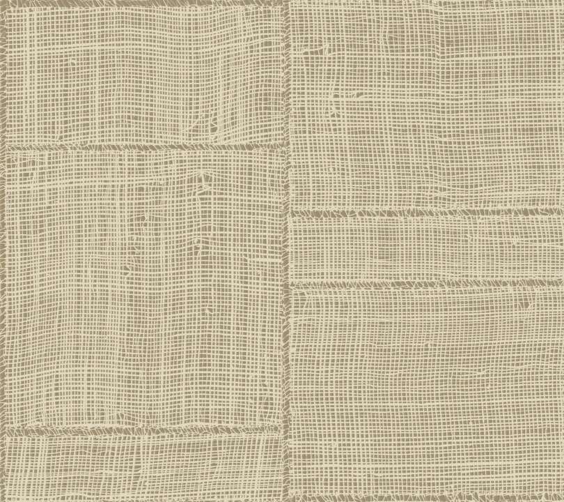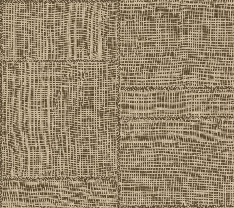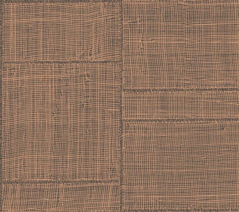 Geïnspireerd op handgeweven, open raffia patchwork waarbij de vlakken van verschillende groottes aan elkaar zijn gestikt.