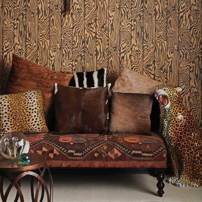 Geïnspireerd door verweerd drijfhout, compromitteert Zebrawood met gevlekte dierenprintmarkeringen om dit unieke gestreepte behang in verschillende kleuren en tinten te creëren.