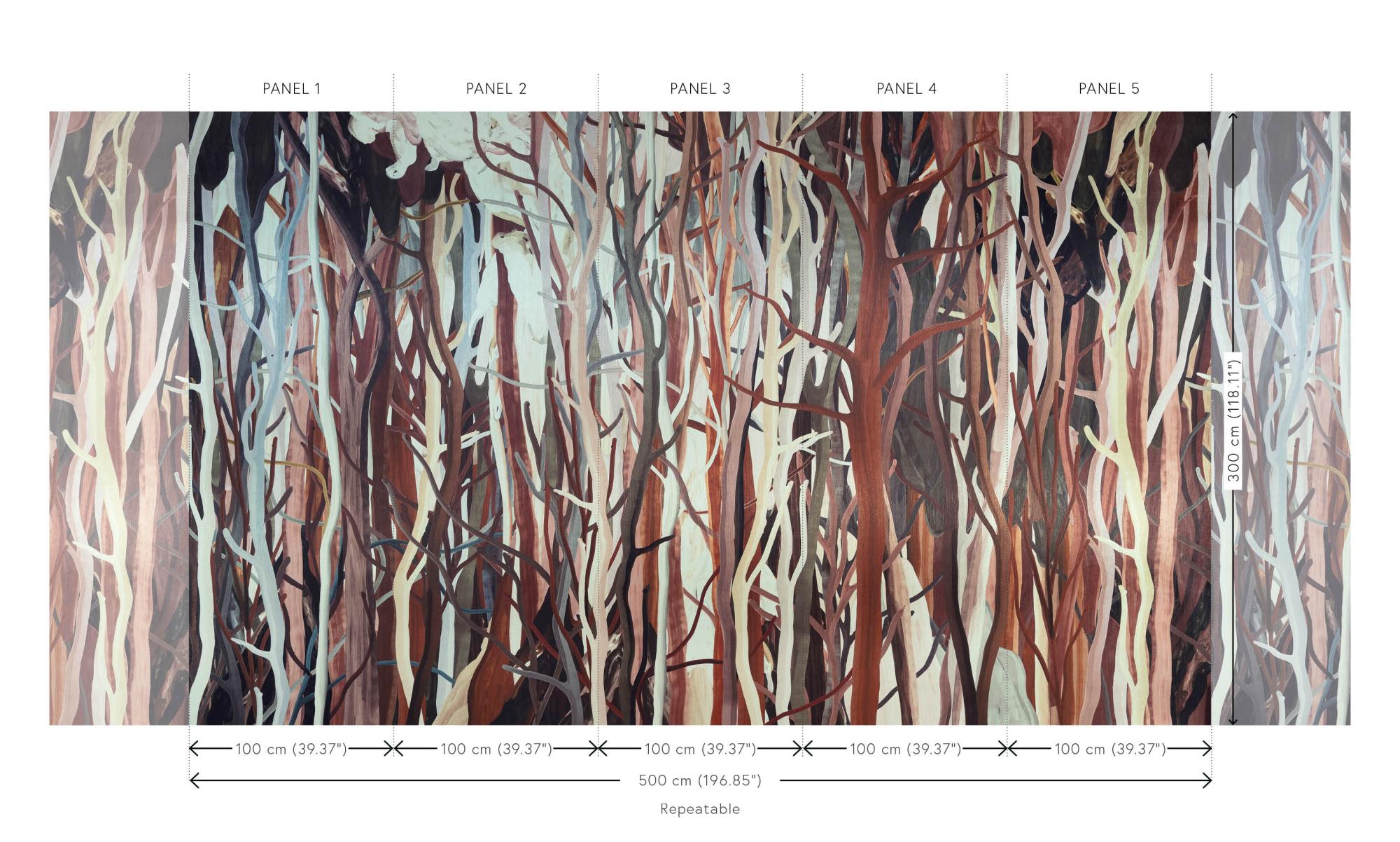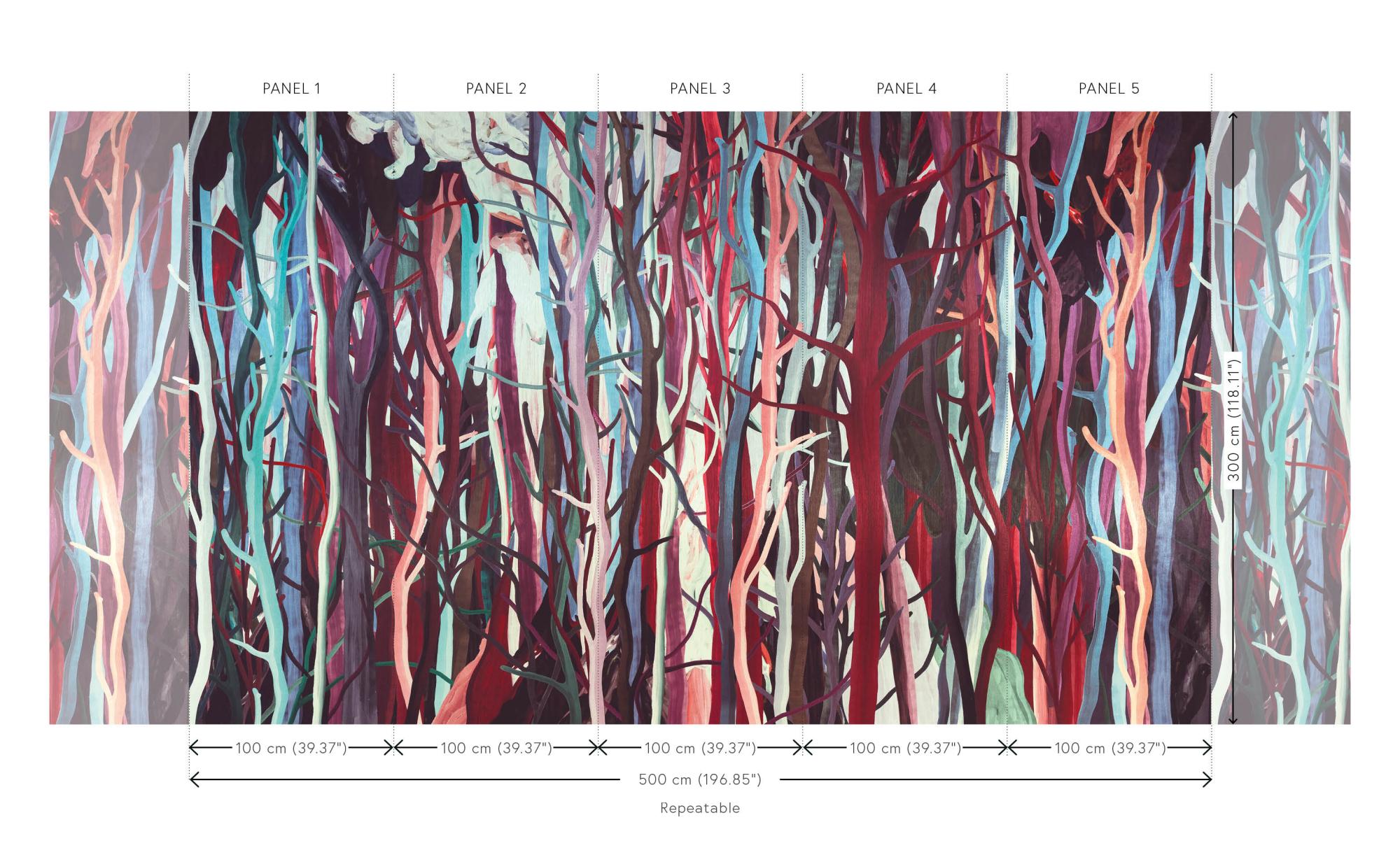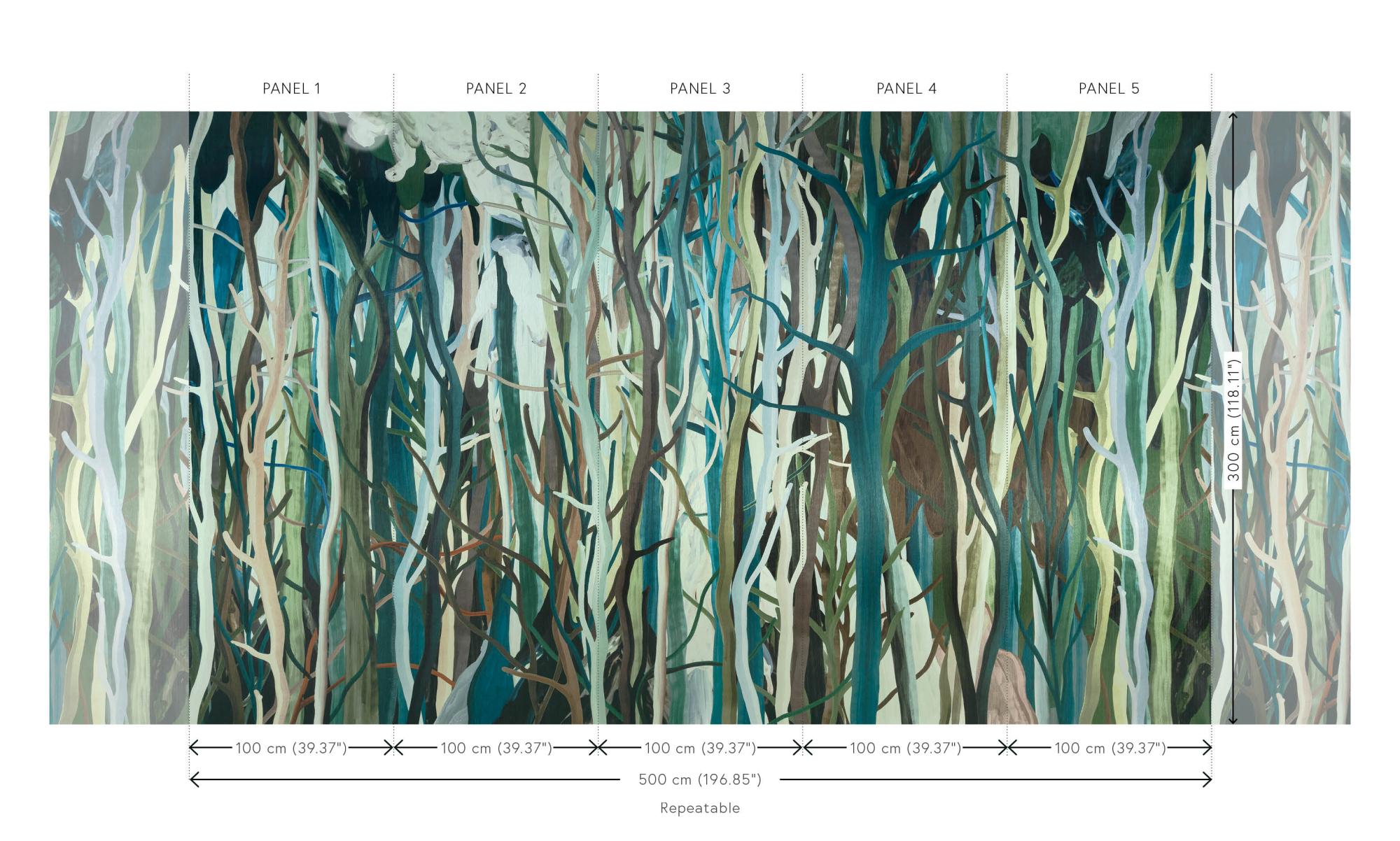 De Décors & Panoramiques-collectie van Arte is een bijzondere lijn muurdecoraties die kunst en interieur samenbrengt. Elk panorama of décor vertelt een eigen visueel verhaal, versterkt door verrassende materialen — van fluweelzachte zijdelooks en bouclé tot verfijnde linnenstructuren. De handgeschilderde Panoramiques vormen samen één indrukwekkend panoramisch kunstwerk, opgebouwd uit meerdere banen. De Décors zijn echte statement pieces: uitgesproken afbeeldingen die per meter worden geleverd. Mangrove uit deze collectie is een kleurrijke interpretatie van een exotische mangrove, met elegant getekende wortelstructuren die voor een sterk verticaal ritme zorgen. Het panorama wordt digitaal geprint op een glanzend fil‑à‑fil textiel: een fijn geweven stof waarin twee kleuren garen elkaar kruisen voor een subtiel, levendig effect. Een helder, grafisch ontwerp met een frisse tropische uitstraling. Mangrove uit deze collectie is een kleurrijke interpretatie van een exotische mangrove, met elegant getekende wortelstructuren die voor een sterk verticaal ritme zorgen. Het panorama wordt digitaal geprint op een glanzend fil à fil textiel: een fijn geweven stof waarin twee kleuren garen elkaar kruisen voor een subtiel, levendig effect. Een helder, grafisch ontwerp met een frisse tropische uitstraling. Deze textielmuurbekleding op vlies is goed lichtbestendig, tijdens het plaatsen licht afwasbaar en eenvoudig aan te brengen: de muur wordt ingelijmd, bij voorkeur met Arte Clear pro-lijm. Bovendien is het afstripbaar, wat een vlotte verwijdering mogelijk maakt. Het panorama van 500 cm x 300 cm wordt geleverd op één rol van vijf stroken van 100 cm breed. De tekening sluit perfect aan zodat je meerdere exemplaren naast elkaar kunt plaatsen. Verkrijgbaar in drie kleurstellingen. Dit panorama van 500 cm x 300 cm wordt geleverd op één rol van vijf stroken van 100 cm breed. De tekening sluit perfect aan zodat je meerdere exemplaren naast elkaar kunt plaatsen. Verkrijgbaar in drie kleurstellingen.