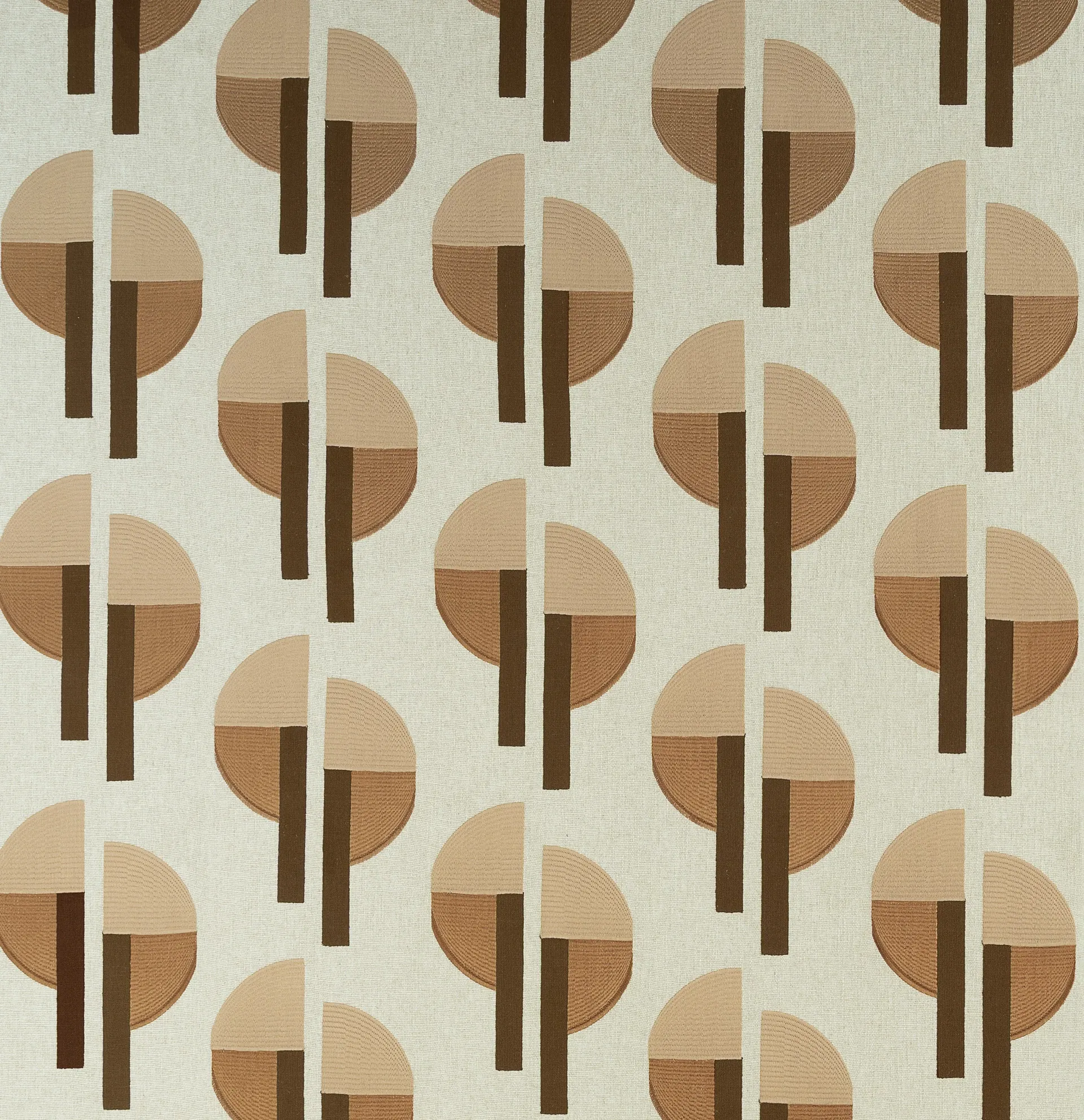 De Décors & Panoramiques-collectie van Arte is een bijzondere lijn muurdecoraties die kunst en interieur samenbrengt. Elk panorama of décor vertelt een eigen visueel verhaal, versterkt door verrassende materialen — van fluweelzachte zijdelooks en bouclé tot verfijnde linnenstructuren. De handgeschilderde Panoramiques vormen samen één indrukwekkend panoramisch kunstwerk, opgebouwd uit meerdere banen. De Décors zijn echte statement pieces: uitgesproken afbeeldingen die per meter worden geleverd. Selas uit deze collectie haalt zijn retro uitstraling uit de geometrische halve maantjes die het dessin bepalen. De naam komt van het Griekse selas, dat licht en helderheid betekent — precies wat dit patroon uitstraalt. Het ontwerp combineert twee soorten broderie op een basis van linnen en viscose: de geborduurde halve manen contrasteren mooi met de strakke verticale lijnen. Een grafisch, textielrijk decor met een subtiele vintage knipoog. Deze textielmuurbekleding op vlies is goed lichtbestendig, tijdens het plaatsen licht afwasbaar en eenvoudig aan te brengen: de muur wordt ingelijmd, bij voorkeur met Arte Clear pro-lijm. Bovendien is het afstripbaar, wat een vlotte verwijdering mogelijk maakt. Dit product wordt verkocht per meter en is verkrijgbaar in drie verschillende kleurstellingen.