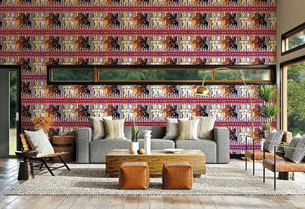 Crazy Horse behang uit de Enriquezland-collectie van Hooked On Walls: voor dit dessin werd Enriquez geïnspireerd door Moira Orfei en haar showpaarden. De Enriquezland-collectie is ontstaan uit een samenwerking van Janelli & Volpi en ontwerper Alessandro Enriquez is een ode aan Italië. Intense kleuren, levendige kenmerken en vol symbolen van liefde. Een selectie van 50 tekeningen, ondertekend door de ontwerper, die een heel specifieke boodschap overbrengen: Liefde!