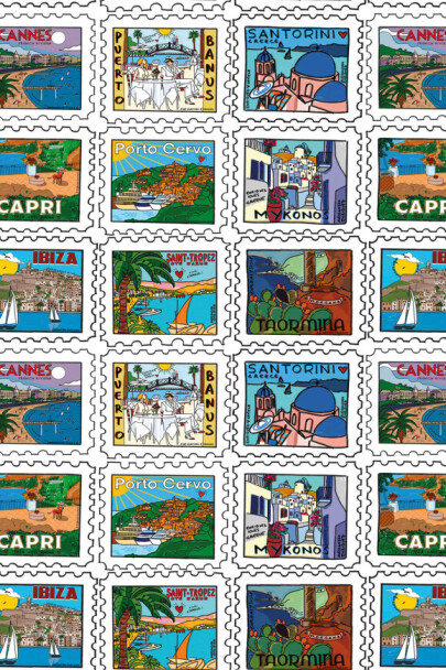 Memento behang uit de Enriquezland-collectie van Hooked On Walls doet sterk denken aan ansichtkaarten van weleer, verstuurd vanuit alle hoeken van Italië, heeft eeen patroonherhaling van 28 cm. De Enriquezland-collectie is ontstaan uit een samenwerking van Janelli & Volpi en ontwerper Alessandro Enriquez is een ode aan Italië. Intense kleuren, levendige kenmerken en vol symbolen van liefde. Een selectie van 50 tekeningen, ondertekend door de ontwerper, die een heel specifieke boodschap overbrengen: Liefde!