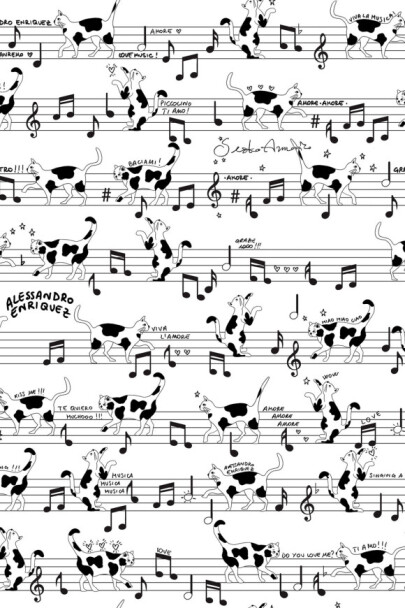 Musicisti behang uit de Enriquezland-collectie van Hooked On Walls heeft een zwart-wit dessin met kittens die op muziekbalken met muzieknoten dansen. Het geheel heeft een patroon van 47 centimeter. De Enriquezland-collectie is ontstaan uit een samenwerking van Janelli & Volpi en ontwerper Alessandro Enriquez is een ode aan Italië. Intense kleuren, levendige kenmerken en vol symbolen van liefde. Een selectie van 50 tekeningen, ondertekend door de ontwerper, die een heel specifieke boodschap overbrengen: Liefde!