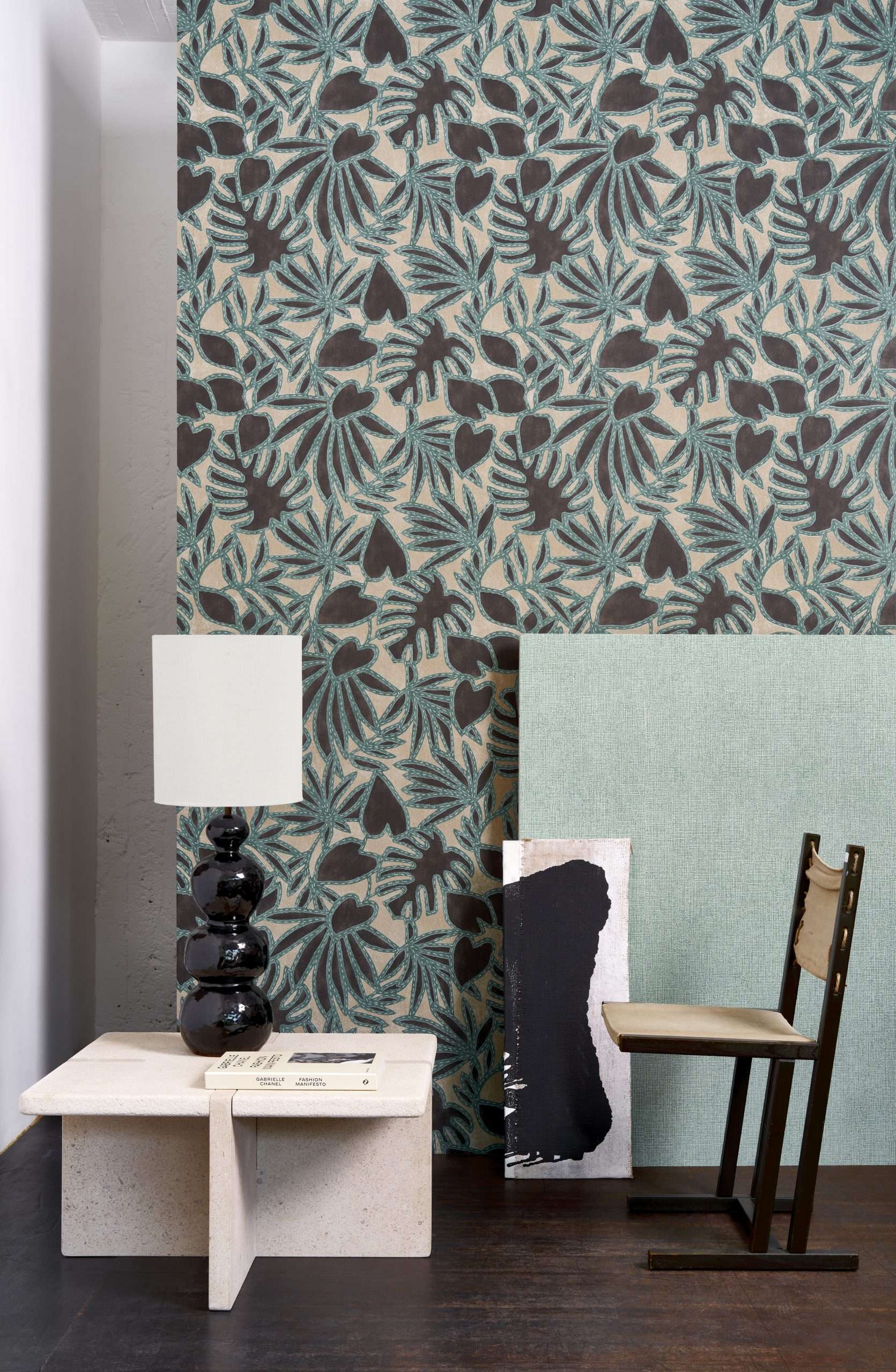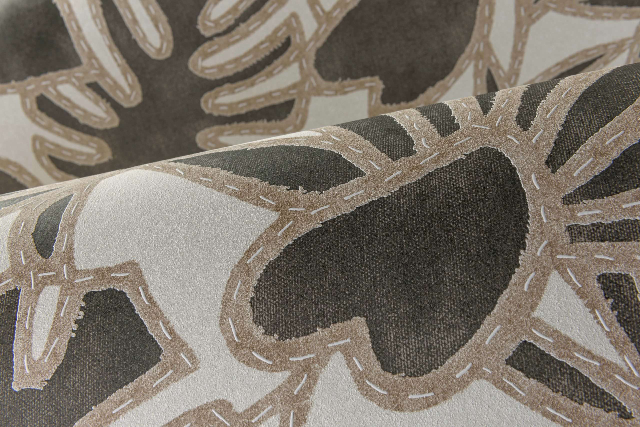 Botanis maakt een knipoog naar de Monstera- en palmplant. De tropische tekening krijgt reliëf dankzij de gebruikte borduurtechniek. De grove stiknaden en contrasterende kleuren vallen op tegen een rustige linnen achtergrond.