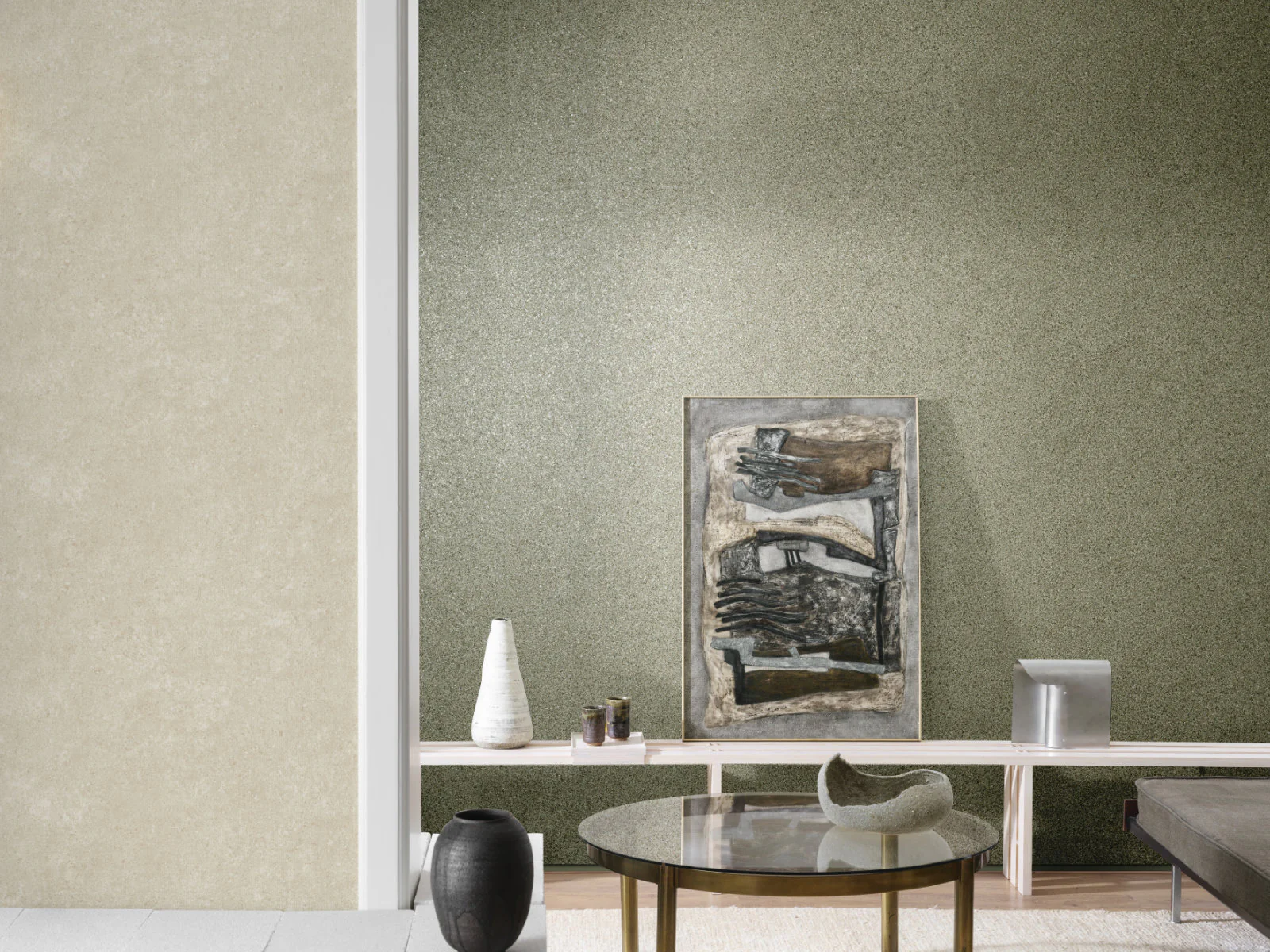 De Essentials Kaolin-collectie van Arte brengt pure materialen en moderne luxe perfect samen. Denk aan kurk, basalt en minerale structuren die een rijk, tactiel gevoel geven — van subtiel geschuurde stucco-looks tot diepe, grafische texturen. Elke print heeft die typische Arte-signature: verfijnd, rustig én uitgesproken tegelijk. De kleuren lopen van zachte, krijtachtige neutraaltinten tot warme mineralen en elegante aardetonen, waardoor Kaolin moeiteloos past in zowel minimalistische interieurs als klassieke woonruimtes.