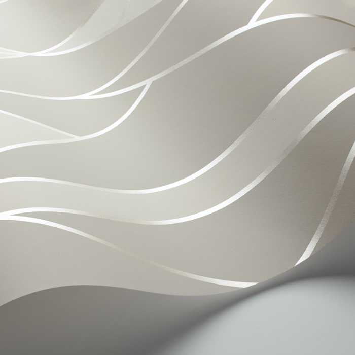 Oblique ontleent zijn naam aan geometrische, niet-parallelle, schuine lijnen en is gedrukt in tweekleurige kleuren en doorkruist met fijne linten van zacht glanzend metallic, waardoor een klassiek glamoureus behang ontstaat.