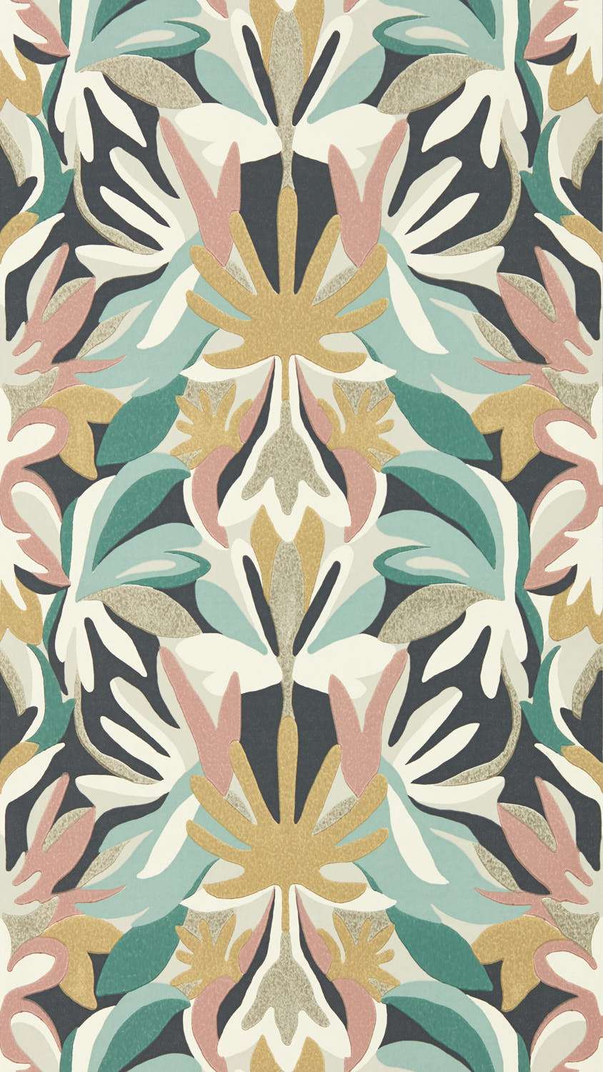 Dit moderne damast zit boordevol levendige kleuren en barst van de botanische invloeden en heeft een met de hand bedrukte look en feel.n Metallic goud geeft een glamoureus tintje aan alle drie de behangsoorten met glinsterend zilver dat het feest vergezelt op de kleurencombinaties Positano en Braziliaans palissander.