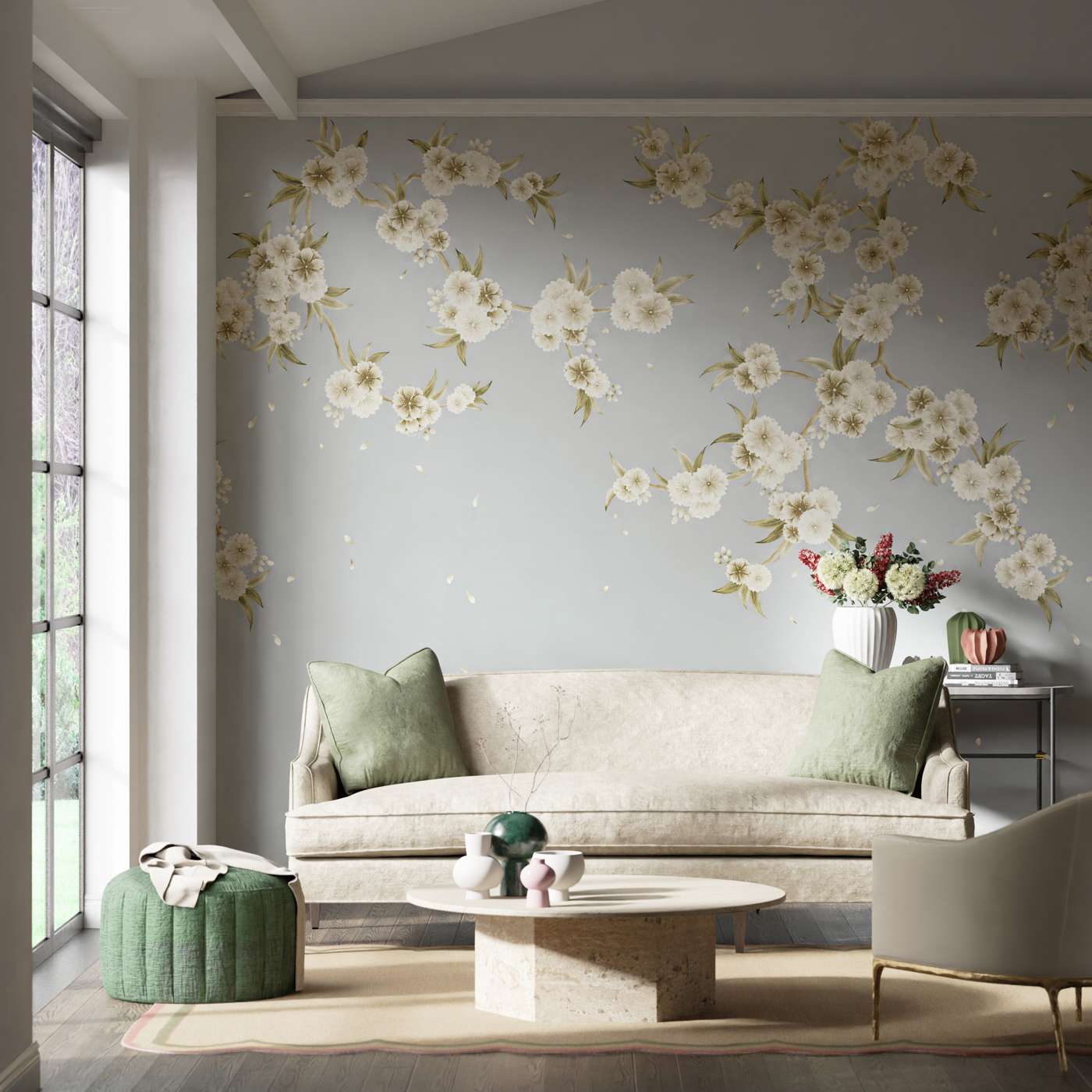 Vernoemd naar Rosa Parks, de Amerikaanse burgerrechtenactivist, clusteren elegante kersenbloesems en cascade in dit impactvolle behangpaneel dat zowel zacht als gedurfd is. Vloeiend en fris, Rosa’s grootschalige bloemen zijn schitterend in hun symmetrie en introduceren een ander, bijna geometrisch gevoel in het ontwerp. Een uitstekende keuze voor hoge plafonds met bloesem die sierlijk naar beneden stroomt, beide kleurstellingen hebben een subtiele mica-grond.