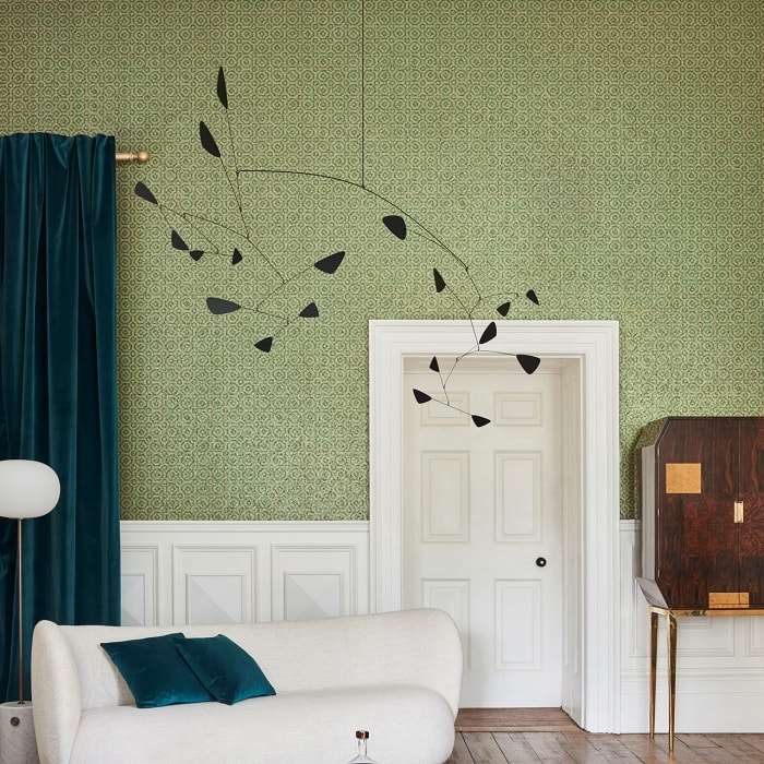 Het opvallende en eigentijdse Queen’s Quarter is een luxueus behang. De onregelmatige achthoeken verschijnen als hoeken in de Queen’s Drawing Room in Hampton Court Palace, waarvan de decoratie werd opgedragen door Queen Anne als een groots statement van haar koninklijke hoogheid en keizerlijke macht. De muurschilderingen werden in hun geheel ontworpen om de illusie te wekken van een open marmeren zaal met de muren beschilderd als wandtapijten met brede bloemenranden en gouden franjes. Het is echter het gepolijste metaal van Queen’s Quarter dat het creatieve team van Cole & Son opviel. De ingetogen herhaling en het elegante detail onthulden een verborgen juweel binnen het veel grotere traditionele schema.