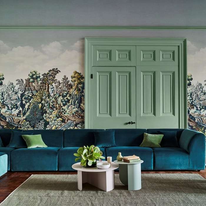 Het Verdure Tapestry is geïnspireerd op de Vlaamse traditie van weven van grote wandtapijten. Het is een 17e eeuws werk dat momenteel tentoongesteld wordt in de King’s Presence Chamber van Kensington Palace. Het groene schilderachtige tafereel is een eerbetoon aan de rijk geweven en ingewikkelde wandtapijten die bekend stonden als “de mobiele fresco’s van het Noorden”. Deze indrukwekkende geweven kunstwerken waren een canvas voor de verbeelding van de meesterwevers en overladen elk landschap met fantasierijke bomen en gebladerte zonder de traditionele perspectiefbeperkingen van figuratieve of verhalende wandtapijten. Cole & Son vertaalde in dit ontwerp een weelderige paneelscène. Het Verdure bahang zit vol leven met een overvloed aan rijke flora en fauna.