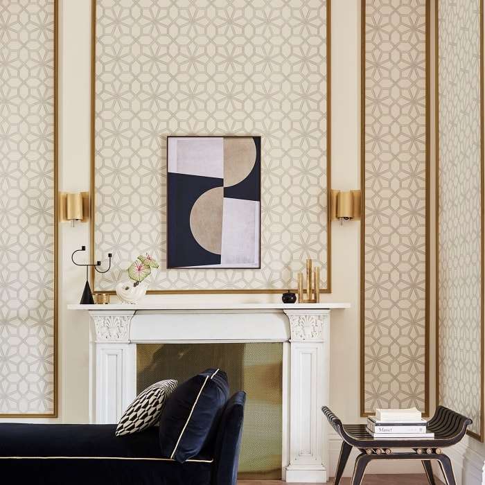 De kanselier van Hendrik VIII, kardinaal Thomas Wolsey, gaf de aanzet tot de transformatie van Hampton Court Palace van een gewoon landhuis tot een prachtig Tudor paleis. Hij zag toe op het oorspronkelijke interieur van deze indrukwekkende verblijfplaats en op het plafond van de Great Watching Chamberwaarin de structuur van de Wolsey Stars vandaag nog te zien is. De print die in het paleis werd aangetroffen als een sierlijk houten geometrisch ontwerp van in elkaar grijpende sterren. het behang heeft een eigentijdse uitstraling met zijn eenvoudige lijntekening-stijl.n