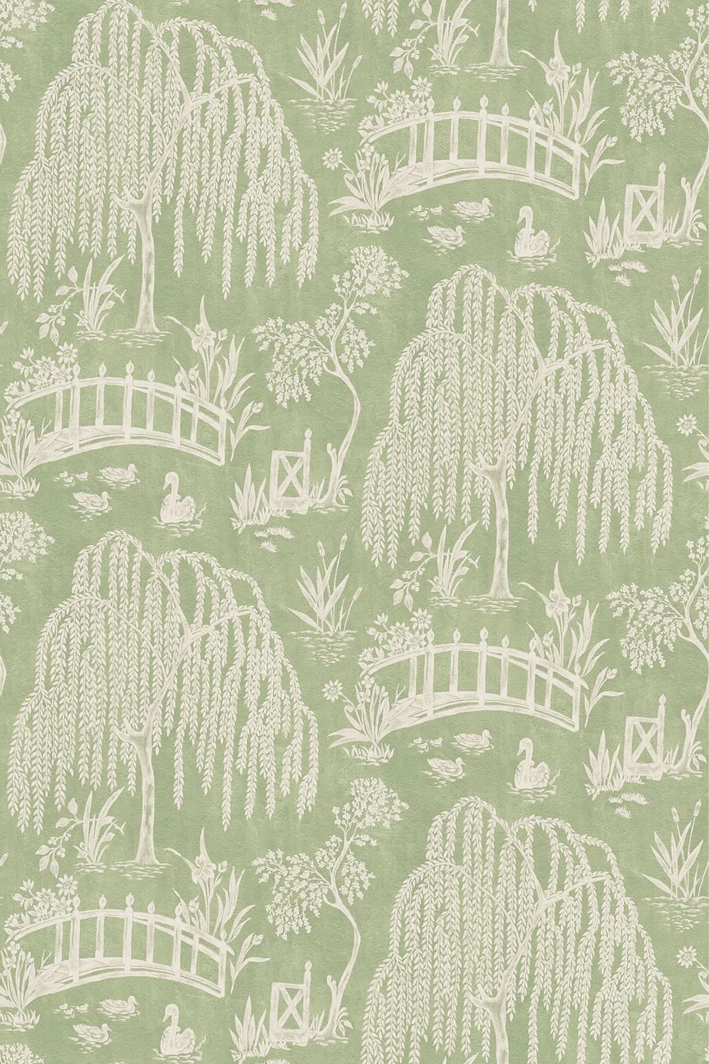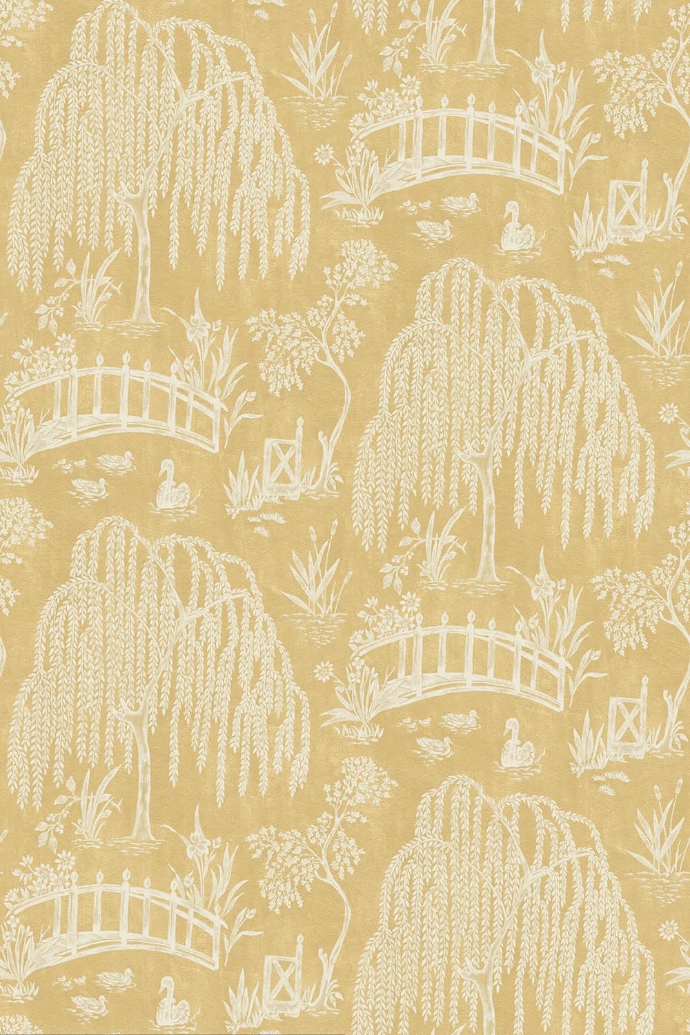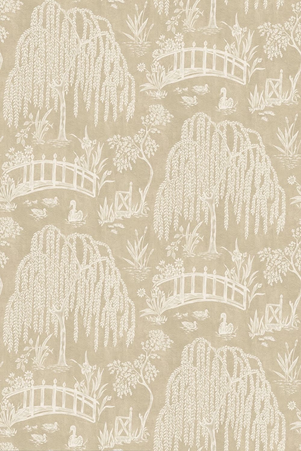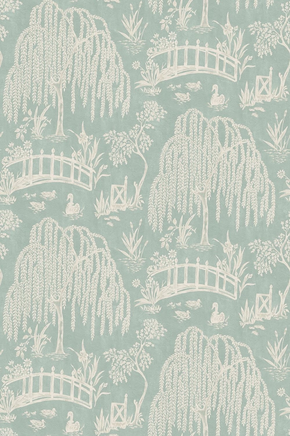 Geïnspireerd door de charme van Franse stadjes en tuinen ontwierp Nina Campbell de Honfleur-collectie. Het Les Saules-dessin toont een romantisch ontwerp van treurwilgen en een boogbrug over een stroompje met eenden, zwanen en riet, gedrukt in een schilderachtige silhouetstijl. Het vliesbehang is licht afwasbaar en eenvoudig aan te brengen: de muur wordt ingelijmd, bij voorkeur met Arte Clearpro-lijm. Verkrijgbaar in vijf kleurstellingen.