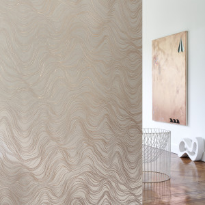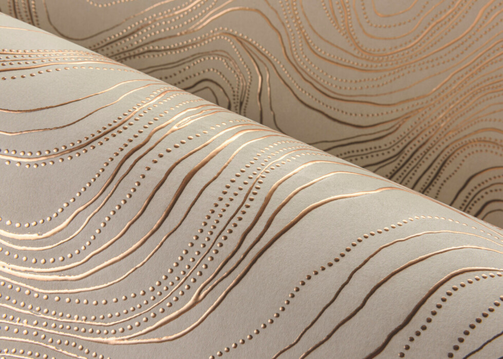 De okerkleurige zandplaten in de Soedanese Bayuda-woestijn zijn bezaaid met rotspartijen. Hier beproeven goudzoekers hun geluk in de ondiepe mijnen. De grillige lijnen in combinatie met het fonkelende goud in dit patroon zijn duidelijke verwijzingen naar hun inspiratiebron.