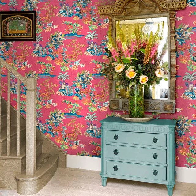 Het gerenommeerde Britse stoffen- en behanghuis GP & J Baker en de visionaire ontwerper Kit Kemp zijn verheugd om hun eerste samenwerking aan te kondigen. Deze samenwerking introduceert een eigentijdse collectie die de kenmerkende, eclectische, kleurrijke stijl van Kit naadloos combineert met de ontwerpexpertise en het rijke erfgoed van GP & J Baker. Het behang is licht afwasbaar en eenvoudig aan te brengen op een met lijm ingesmeerde muur.