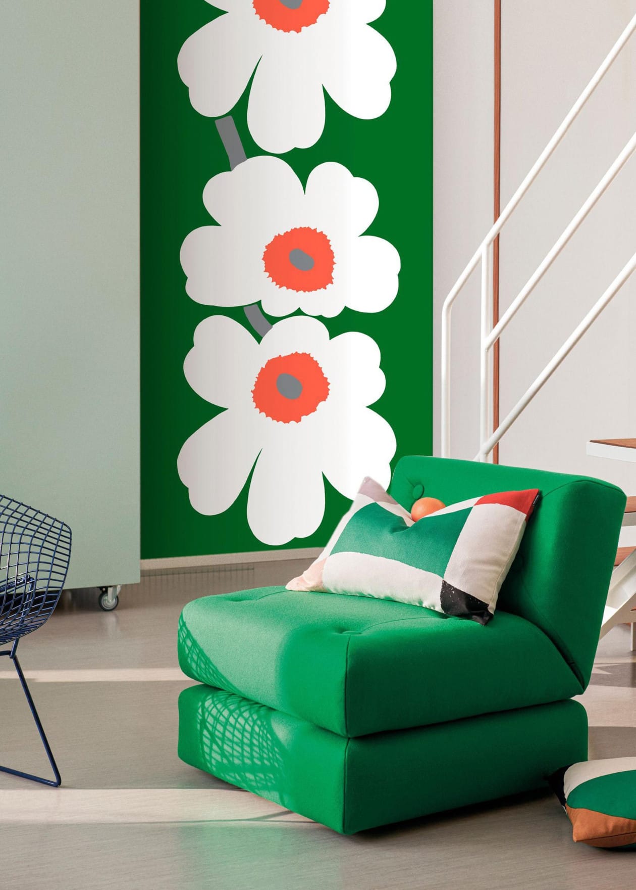 HookedOnWalls is een designerbehangmerk van de Belgische Arte-groep, fabrikant van high-end muurbekleding. De collecties kenmerken zich door dessins die soms gedurfd, vaak verrassend, altijd smaakvol en toch toegankelijk zijn. Het vliesbehang wordt vervaardigd uit FSC-gecertificeerde materialen en bedrukt met hoogkwalitatieve, watergedragen inkt, is lichtbestendig, droog verwijderbaar, licht afwasbaar en eenvoudig aan te brengen: de muur wordt ingesmeerd met lijm, bij voorkeur Arte Clearpro. Jannelli & Volpi, een prestigieus Italiaans familiebedrijf uit Milaan, maakt sinds 1961 luxe, technisch verfijnde en artistiek ontworpen behangcollecties met uitzonderlijk vakmanschap en internationale allure. Marimekko, het in 1951 opgerichte Finse designhuis, geniet wereldwijde bekendheid om zijn iconische prints, gedurfde kleuren en tijdloze ontwerpen. In samenwerking met Jannelli & Volpi creëerde Marimekko een exclusieve wandbekledingscollectie voor HookedOnWalls waarin Scandinavische stijl en moderne elegantie samensmelten met Italiaanse perfectie.