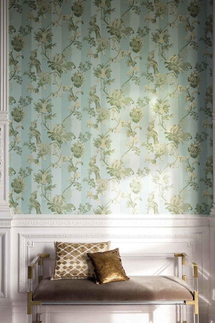 Zerzura uit de Martyn Lawrence Bullard-collectie van Cole & Son is vernoemd naar de mythische stad die ‘oase van kleine vogeltjes’ betekent. Het dessin toont klassieke chintzy bloemen gecombineerd met hedendaagse kaketoes in vol verenkleed. Geïnspireerd op een oud archiefontwerp en uitgevoerd in verfijnd lijnwerk, wekt het behang de indruk van borduurkunst.
