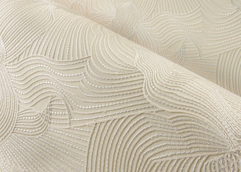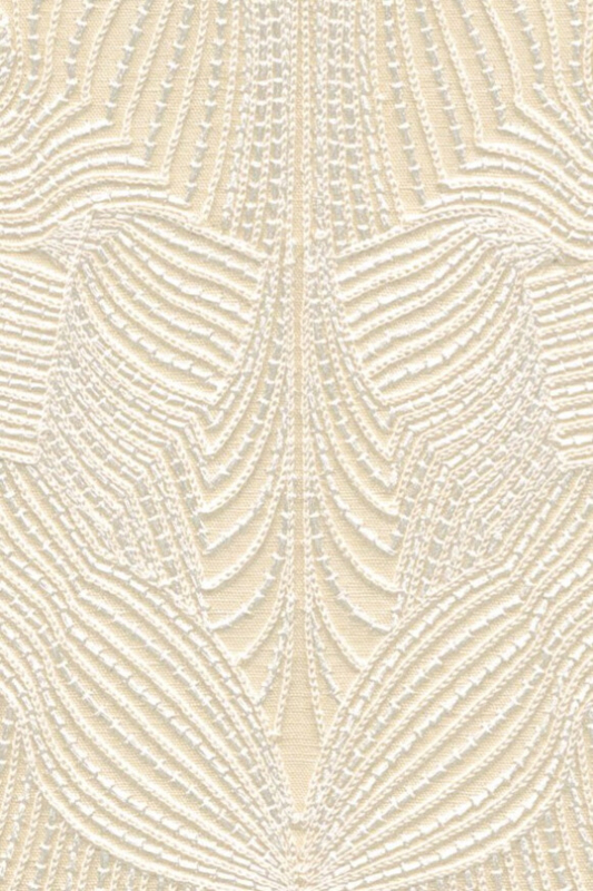 Techno Bee Embroidered behang Moooi. Dit behang is een textiel met een opvallende moire-effect wat gecreëerd wordt door een stikselpatroon. Het geborduurde motief is een combinatie van katoen en linnen vol levendigheid. Behang Techno Bee Embroidered Moooi by Arte Green House behangcollectie.