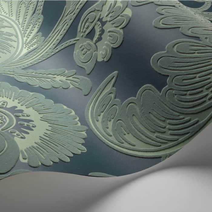 Fanfare Flock is een romantisch en decadent hedendaags flockpapier uit een 19e-eeuws archiefontwerp.