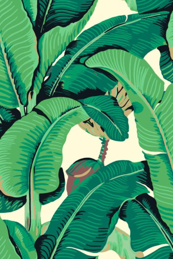 Het botanische bananenbladdessin Hinson Palm uit de Scalamandré-collectie vindt zijn oorsprong bij Hinson, een boutique behanglabel dat bekend stond om zijn verfijnde, artistieke dessins. Hun iconische ontwerp met grote, weelderige bananenbladeren groeide al snel uit tot een tropische klassieker. Vandaag is dit motief uitgegroeid tot één van Scalamandré’s meest geliefde dessins. Het vliesbehang is goed lichtbestendig, afwasbaar en eenvoudig aan te brengen: de muur inlijmen, bij voorkeur met Arte Clearpro. Bovendien is het afstripbaar, wat een vlotte verwijdering mogelijk maakt. Verkrijgbaar in vier kleurstellingen.