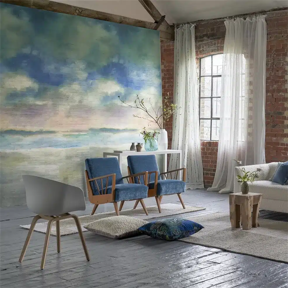 Muren staan centraal met onze derde en grootste collectie scènes en muurschilderingen met een breed scala aan ontwerp, van grootschalige schilderachtige en grafische bloemen tot geometrische gegevens, vlaktes en natuurlijk buitengewone schilderachtige landschapsschilderingen die echte kunstwerken zijn. Met nieuwe behangpaneelontwerpen in een uitgebreid palet van kleuren en ondergronden van glad vlies tot textuurachtige natuurlijke grasdoeken, voegt deze verbluffende collectie drama en artisticiteit toe aan uw binnenruimte.