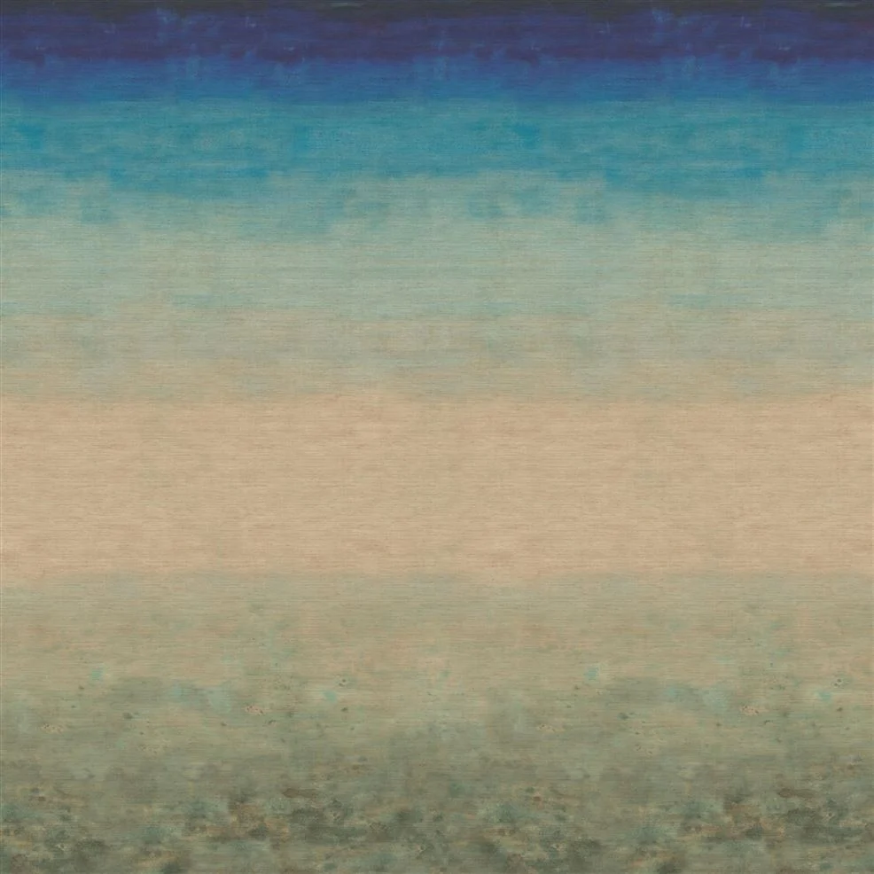 De meeslepende inktzwarte diepten van een aquarel wassen die ook de achtergrond is van een vervagend diepste indigo naar zachte zandsteen. Digitaal gedrukt op luxe natuurgrasdoek met een niet-geweven achterkant creëert dit elegante behang een handgeschilderd gevoel van diepte en ongelooflijke textuur. Variaties in de schaduw van het oppervlak en zichtbare verbindingslijnen maken allemaal deel uit van de charme en verfijning van natuurlijke grasdoekwandbekleding.