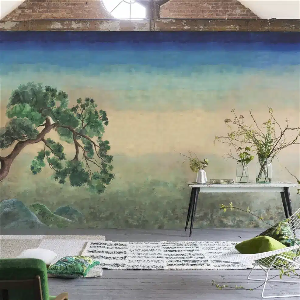 Een heerlijk serene studie van de oude Oosterse den – een boom die wortel schiet in de kleinste scheuren van bergen van China, maar toch resoluut groeit en bloeit tegen alle verwachtingen in. Dit symbool van de vastberadenheid van de natuur is geschilderd op de colorwash-grond van een kunstenaar om deze dramatische behangscène te creëren. Dit grootschalige digitaal geprinte schilderachtige behang voegt karakter en diepte toe aan elke ruimte.