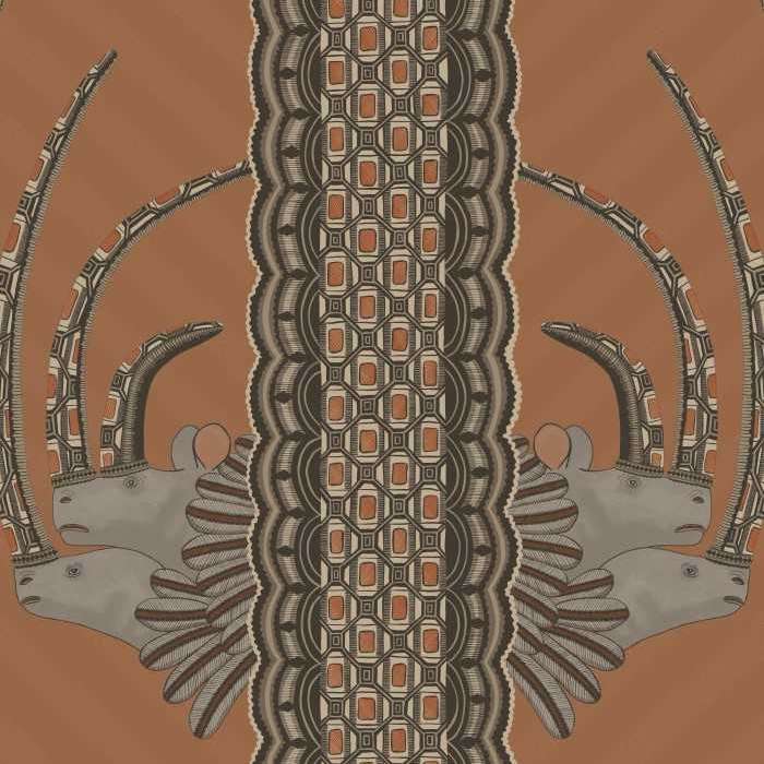Dit behang is vernoemd naar een van de beste ontwerpers van Ardmore. De ontwerper heeft in dit behang zijn inspriatie gehaald uit een collectie prachtig potten met een design van sculpturale neushoorns. De Cole & Son kunstenaars hebben de markeringen op deze potten gebruikt om een prachtige rijke, levendige verticale streep te creëren. Dit behang ademt als een ware Afrikaanse geest met patronen die doen denken aan het vlechten van Zoeloe-manden.