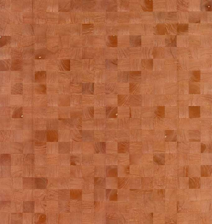 Een collage van volmaakte vierkantjes. Door houtfragmenten te verzamelen uit verschillende delen van de boom, verkrijg je nu eens een stukje met nerven, dan weer met herkenbare knoesten. Geen twee stukjes zijn gelijk, ze vormen een willekeurig patroon in het inlegwerk.
