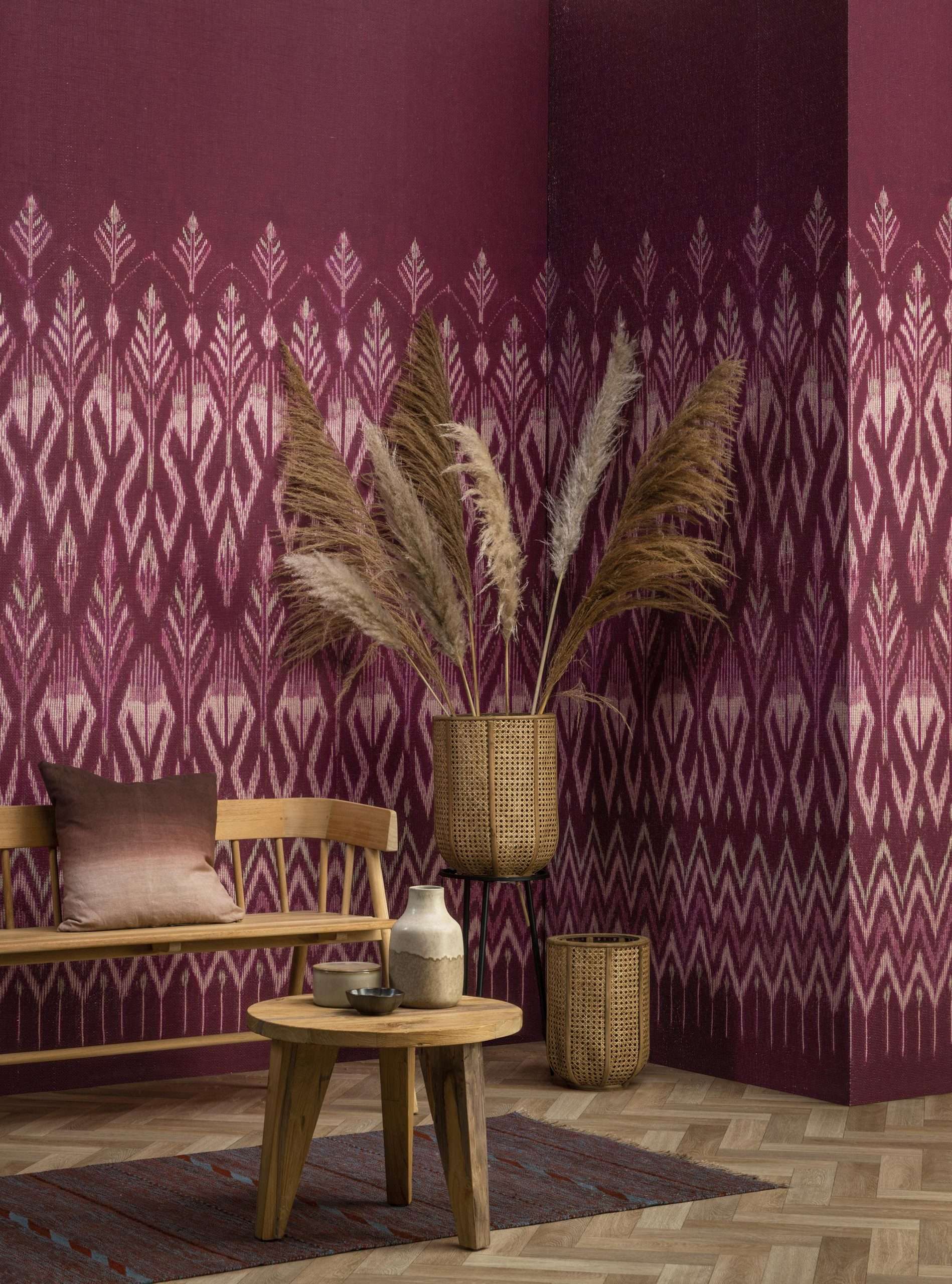 Een combinatie van ritselende raffia imitatie en katoen, verweven tot een prachtig motief. Tribu verwijst naar de typische tribale motieven, zoals je ze kent van Mexicaanse stoffen. Rijkelijk en uitbundig, zonder overdadig te zijn.