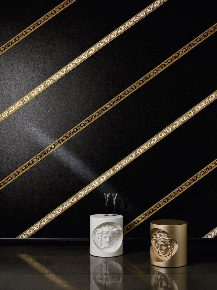 De derde behangcollectie van Versace presenteert elegante wandmeubels in zijn kenmerkende merkstijl.
