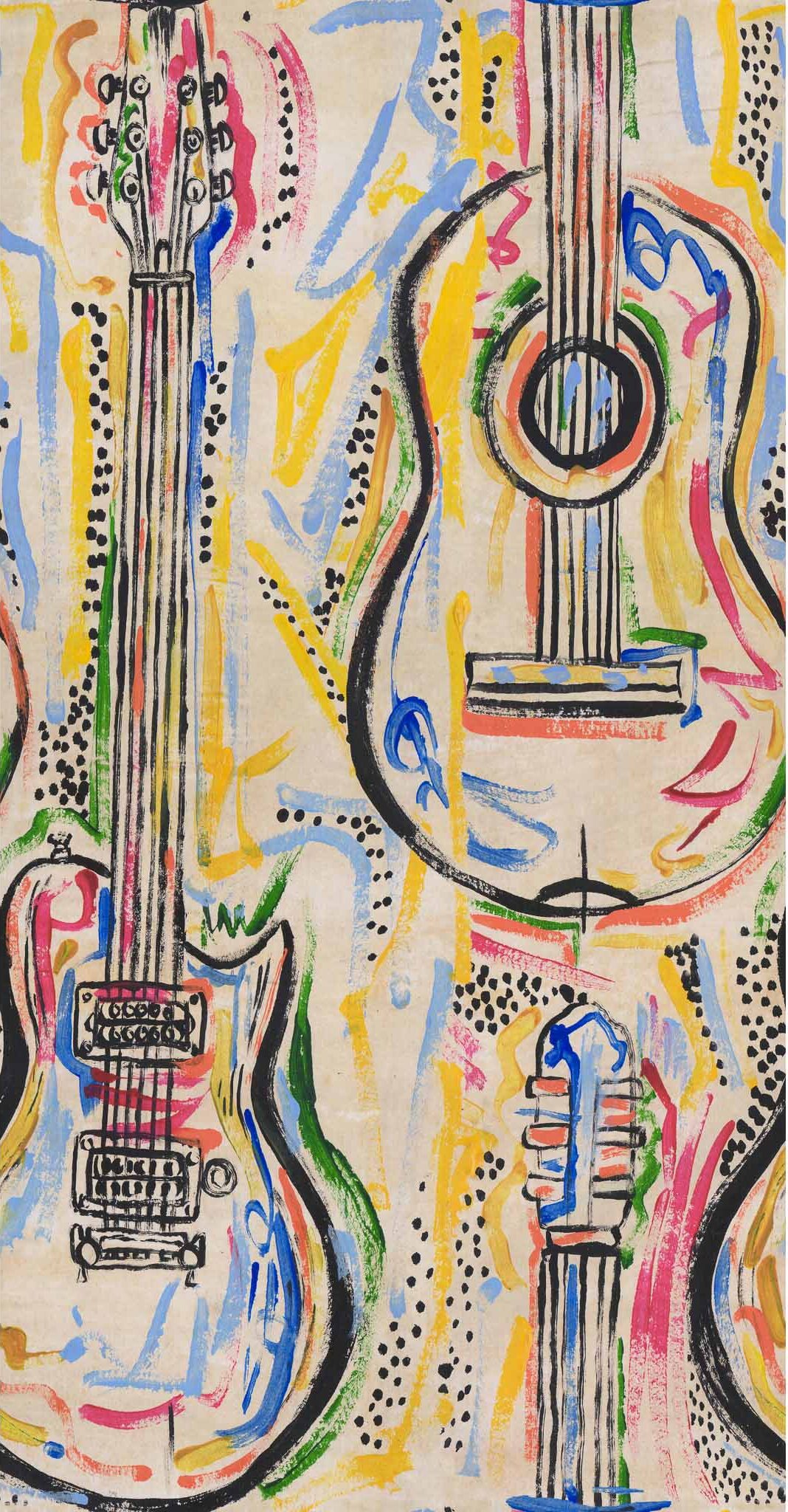 Het Woodstock Harmony Dark behang van Mind The Gap staat in het teken van muziek en de magie van de gitaar. Het toont de vorm en schoonheid van dit instrument te midden van abstracte lijnen in psychedelische kleuren. Breng de muziek in je interieur en creëer hiermee je een unieke sfeer.