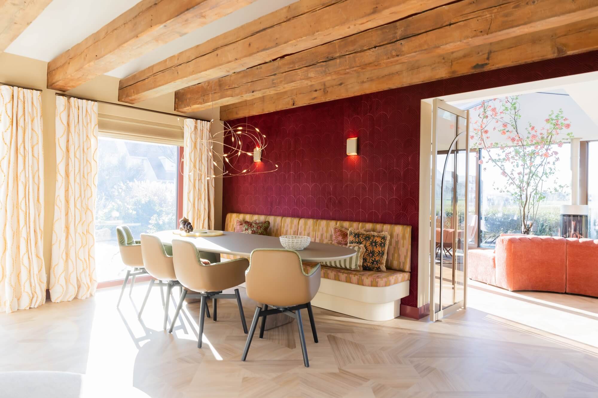 Interieur designer Lisa van Nes ontwerpt ruimtes die voelen als thuis. Met een intuïtief gevoel voor kleur, materiaal en sfeer vertaalt ze jouw verhaal naar een warm en persoonlijk interieur. Zo ook dit maximalistische interieur in hartje Noordwijk waar veel kleur is toepast en Lisa gewerkt heeft met verschillende prints en structuren.